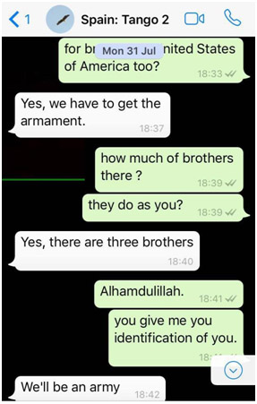 21 DE AGOSTO DE 2017 – EXEINTEL, grupo de operaciones de inteligencia cibernética llevaron a cabo la vigilancia en línea contra el terrorismo conversando con uno de los yihadistas que operan en España. El lunes, 31 de julio de 2017, hubo una conversación importante que llevó a EXEINTEL a compartir inmediatamente información crítica con las autoridades de Europa y Estados Unidos..