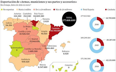 En el año 2016 esta Comunidad Autónoma facturó casi 45 millones de euros en este tipo de armas, de los que 1,6 millones de euros los pagó el gobierno saudí. El total nacional ascendió a 177,5 millones de euros.