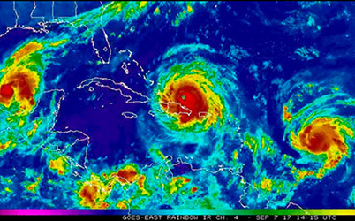Se trata de la primera vez que tres huracanes surgidos en el Atlántico tienen el potencial de tocar tierra al mismo tiempo. La última vez que la región presenció tres huracanes simultáneos fue en 2010, con Igor, Julia y Karl todos alineados en la zona al mismo tiempo.