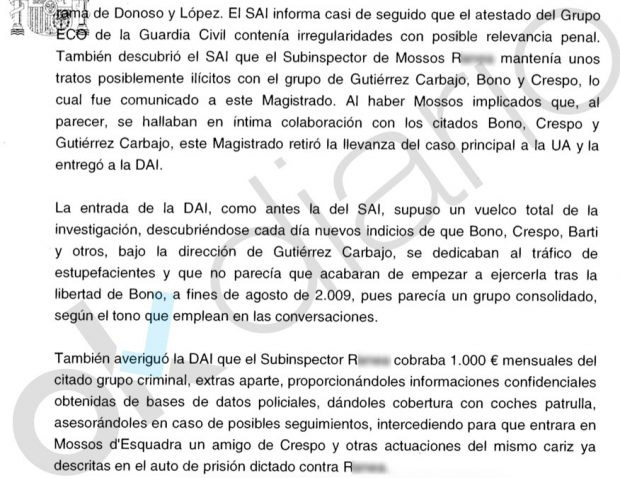 La División de Asuntos Internos (DAI) descubrió que un subinspector de los Mossos cobraba 1.000 euros al mes de los narcos (OK Diario).
