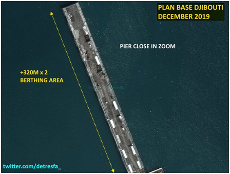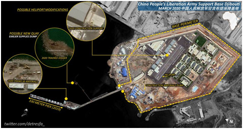 La revista estadounidense Forbes, en su edición de esta semana, divulgada el domingo, hizo público unas imágenes satelitales que muestran las crecientes actividades de la Armada del Ejército Popular de Liberación (EPL) de China en su base naval en el extranjero en Yibuti, en el Cuerno de África.
