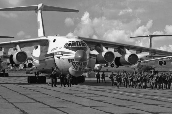 Unidades de aterrizaje de las Fuerzas Aerotransportadas Rusas en el aeropuerto de Tiraspol durante el conflicto militar en Transnistria en 1992