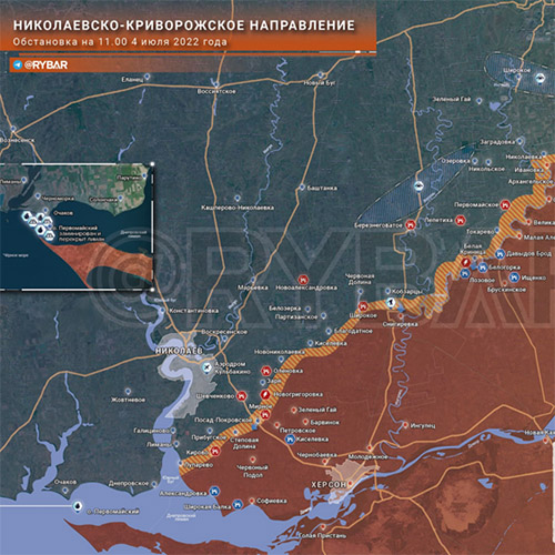 ?? En la dirección Nikolaev-Krivoy Rog, las Fuerzas Armadas de Ucrania intentaron una ofensiva en la línea Snigirevka-Lozovoe-Belaya Krinitsa, así como en Kirovo-Posad-Pokrovskoye.