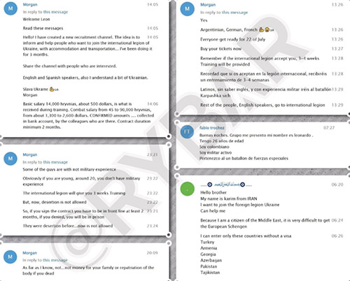 Los rusos encontraron uno de los numerosos canales de Telegram para reclutar extranjeros en las filas de la "Legión Internacional" ucraniana y el batallón nacionalista "Carpathian Sich".