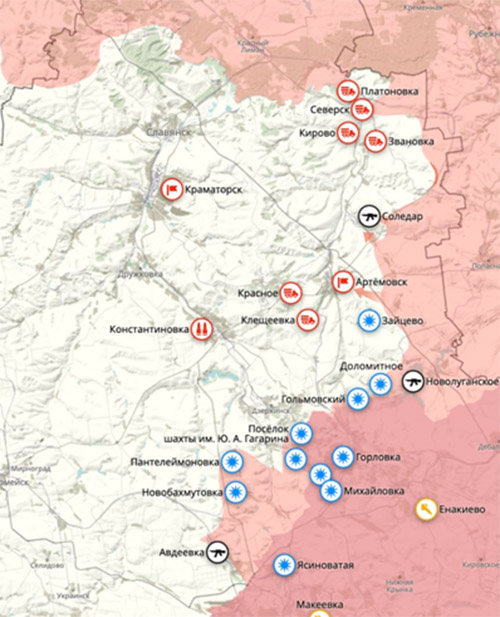 Por el momento, se puede argumentar que el ejército ruso, al atacar Slavyansk, se encuentra en la posición más desventajosa: en las tierras bajas. Se puede dar espacio operativo para la maniobra eliminando el "fondo de Bakhmut" y acceder a las alturas dominantes desde el sur y el este.
