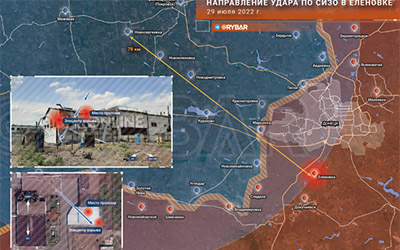 La dirección de la brecha en el techo y la fuente del fuego apuntan directamente a un ataque desde la dirección noroeste: el disparo se llevó a cabo desde la trayectoria de Marinka - Kurakhovo - el triángulo Sergeevka - Pokrovsk - Udachnoe.