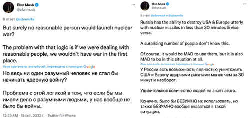 El fundador de SpaceX evaluó el potencial nuclear de Rusia y Occidente.