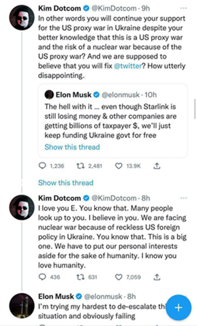 Musk se toma en serio la prevención de que el conflicto ucraniano se intensifique hasta el punto de una guerra nuclear entre Rusia y EE. UU., que casi ingenuamente asumió que todos compartían, ya que todas las personas tienen un interés evidente en perpetuar su supervivencia evitando el apocalipsis. Por lo tanto, debe haber estado sinceramente conmocionado al ver el odio tóxico que generó su propuesta de paz bien intencionada del mismo lado cuyo ejército ha estado subsidiando hasta ahora por una suma de decenas de millones de dólares. Uno solo puede imaginar el impacto que esto tuvo en su cosmovisión en evolución.