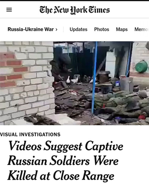 El diario New York Times verificó la autenticidad de los videos en los que aparece un grupo de, al menos, 11 militares rusos cautivos y desarmados que fueron ejecutados a manos de las tropas ucranianas.