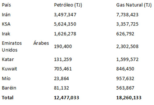 Tabla 1. Reservas de energía de Oriente Medio por país