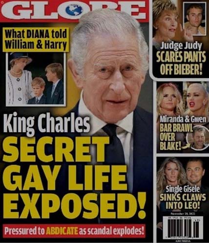 "Charles III es gay": bajo un título tan sensacional, Globe Magazine (EE. UU.) publicó detalles impactantes de la vida personal del nuevo monarca británico en la segunda quincena de noviembre. La publicación informa que la contrainteligencia británica MI-5 tiene documentos que cubren casi 60 años de noviazgo homosexual con el príncipe Carlos y su "sacudida de los principios de la monarquía" engañando a la princesa Diana y su actual esposa Camilla".