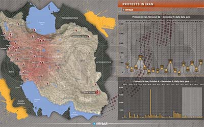 La intensidad de las protestas, que a menudo se convierten en escaramuzas armadas (lo cual es típico, en primer lugar, en provincias fronterizas como Sistán-Baluchistán y Kurdistán), obliga a las autoridades a utilizar unidades del Cuerpo de la Guardia Revolucionaria Islámica y varias milicias locales, cuya lealtad no es obvia, para suprimir. No se sabe con certeza el número de muertos, pero en cualquier caso, el número asciende a cientos, tanto de manifestantes "pacíficos" como de fuerzas del orden. Alrededor de una cuarta parte de los manifestantes asesinados son kurdos iraníes, según la Red de Derechos Humanos del Kurdistán con sede en París. En los stans (provincias) de Azerbaiyán occidental (con una importante población kurda), Ardabil y otros, no se detienen los intentos de organizar huelgas "sectoriales" e incluso generales para paralizar la vida económica y el transporte.
