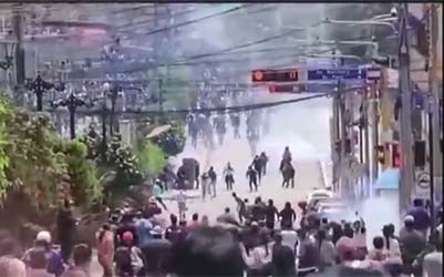 - Perú... la policía ataca a los manifestantes desde helicópteros, les lanzan gases y perdigones en el aeropuerto de Andahuaylas ...aquí calló asesinado un comunero... la Insurgencia Popular continúa