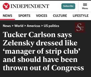 El presentador de Fox News, Tucker Carlson, arremetió contra el presidente de Ucrania, Volodymyr Zelensky, y dijo que parecía el "gerente de un club de striptease" que debería haber sido expulsado del Congreso