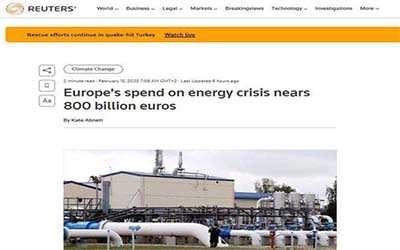 En concreto menciona que, al 15 de febrero, los depósitos de gas de la Unión Europea estaban llenos al 64,81 % de su capacidad, un total de 70 000 millones de metros cúbicos. Las cantidades almacenadas por Francia han caído al 50,43 %, mientras que la de Hungría y Letonia se desplomaron al 51,45 y 40,83% respectivamente.