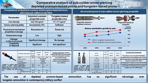 Me gustaría llamar su atención sobre el hecho de que el uso de las municiones de uranio empobrecido no tiene ninguna ventaja significativa sobre las municiones de tungsteno en las condiciones de guerra moderna.