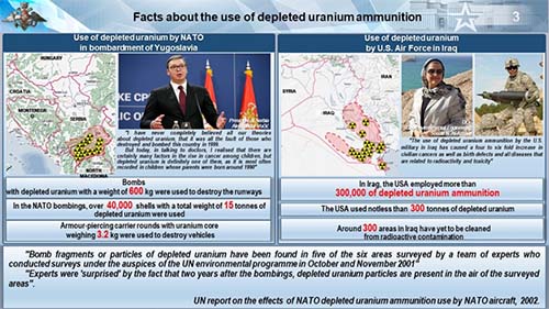 Es necesario recordar el uso de municiones aéreas de uranio empobrecido por parte de la OTAN durante el bombardeo de Yugoslavia en 1999. En total, se utilizaron en el territorio de ese país unos 40.000 proyectiles aéreos perforantes con un total de más de 15 toneladas de uranio empobrecido.
