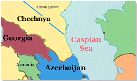 Azerbaiyán, en el Mar Caspio, tiene vastas reservas de petróleo y gas. Y su única competencia eran los oleoductos rusos que pasaban por... Chechenia.