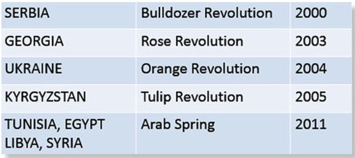 Muchas otras "revoluciones de color" siguieron el mismo manual. Cuando un líder pro-estadounidense perdía una elección, las organizaciones comunitarias financiadas por Soros/USAID/NED empezaban a protestar. A esto se le llamaba una "revolución", con nombres pegadizos como Tulipán, Naranja, Rosa, Paraguas, etc. Tras la propaganda sofisticada y la presión internacional, se celebraban nuevas elecciones y, listo, el candidato pro-estadounidense ganaba. Enjuáguelo y repítalo.