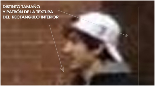 En la imagen ampliada la foto difundida por el FBI, el periodista Rafael López ha mostrado que donde termina un ladrillo y comienza el otro aparecen patrones irregulares; las diferencias entre la textura del ladrillo y las irregularidades en los patrones de enladrillado sugieren que toda la cabeza y el rostro muestra una clara evidencia de ser una imagen compuesta hecha con programas como Photoshop.
