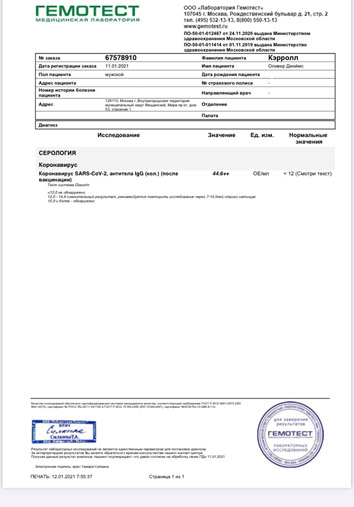 La vacuna desarrollada en Moscú también se administró a Oliver Carroll de Independent y Nataliya Vasilyeva de Telegraph. Desde que tomó su primera dosis, Carroll ha sido relativamente elogioso sobre todo el proceso, y luego reveló que tiene anticuerpos. En el lado negativo, señaló que tenía efectos secundarios "parecidos a la resaca", que rápidamente disminuyeron. Esta semana, recibió su vacuna de refuerzo.