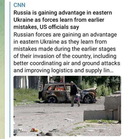 - CNN: “El informe de inteligencia de EE. UU. dice que EE. UU. no espera que los nuevos sistemas de armas entregados recientemente a Ucrania, incluido el sistema de cohetes de lanzamiento múltiple HIMARS, marquen una diferencia en el campo de batalla. La razón es el alcance limitado del MLRS de EE. UU., así como el hecho de que el ejército ruso ya ha destruido parte del equipo y las armas de los países occidentales, incluidos los obuses M777. Los expertos militares estadounidenses creen que la guerra haya pasado definitivamente a la etapa de desgaste, durante la cual Rusia está desgastando a las Fuerzas Armadas de Ucrania.