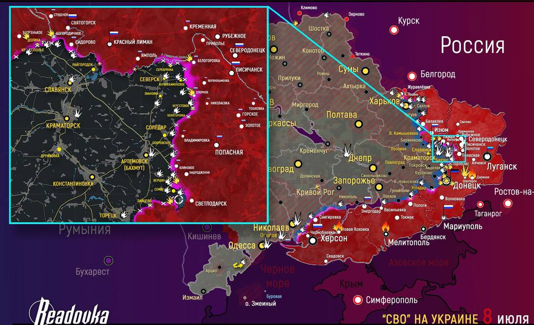 • Ejecución conjunta de los grupos "Z" y "O" en dirección Seversk. El enemigo es expulsado de Lisichansk hacia el Oeste por fuego infernal. Y aún no ha empezado la ofensiva.