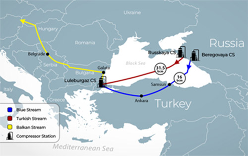 El gas ruso viaja a través de los gasoductos TurkStream y Blue Stream. La capacidad total de los oleoductos rusos es de 39 mil millones de metros cúbicos al año.