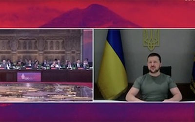 Después de haber tratado de ridiculizar la acción de Moscú, Zelenski llamó que se excluyese a Rusia del ??«G19» (sic). En resumen, hablando en nombre de los anglosajones, Zelenski se atrevió a dar una ?orden a los jefes de Estado y/o de gobierno y ministros de Exteriores de las 20 principales potencias ?mundiales… y no le hicieron caso. En realidad, la disyuntiva que se planteó a esos dirigentes no era ?sobre Ucrania sino someterse o no al orden mundial estadounidense. El hecho es que todos ?los participantes de Latinoamérica, de África y cuatro participantes asiáticos respondieron que la dominación ?estadounidenses ha terminado. Ahora el mundo es multipolar. ?