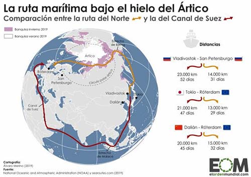 Así que al "Corredor Internacional de Transporte Norte-Sur", a la "ruta norte" (ártica) y al enlace con Turquía y los países africanos por el mar Negro, se agregaría un "ramal comercial asiático" que en un primer término está privilegiando al gas.