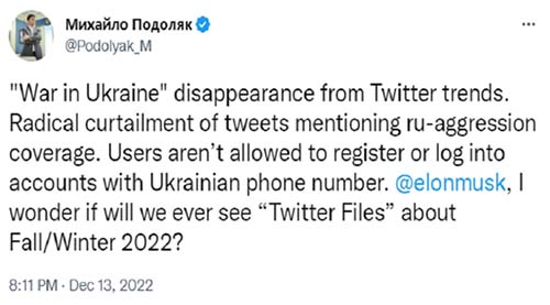 En lugar de que Twitter se ponga de su lado impulsando sus cuentas y hashtags, ahora finalmente se está convirtiendo en un anfitrión neutral de debate civilizado, lo que se alinea con la noble misión de Musk. Sea como sea, esto todavía se está implementando de manera imperfecta, como lo demuestra la existencia continua de ciertas cuentas troll que violan explícitamente los términos del servicio pero que aún no se han eliminado. Sin embargo, el progreso logrado hasta ahora es visible y llevó a Podolyak a quejarse públicamente.