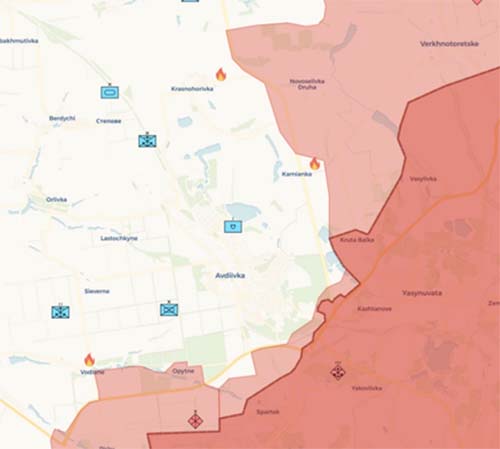 La línea del frente alrededor de Avdiivka (mapa cortesía de MilitaryLand)