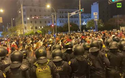 En la céntrica plaza Bolognesi de Lima, la Policía Nacional disparó gases lacrimógenos contra cientos de personas para reprimir la protesta. Además, medios locales reportaron que el gas se metió a los establecimientos aledaños.