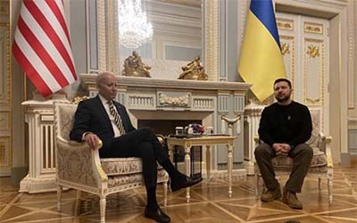 Otro espectáculo circense. Apareció el imperialista en jefe por Kiev a visitar a su lacayo. En una nueva producción de serie B, cada vez más cutre, pretenden engañar a la ciudadanía con el supuesto Biden valeroso arriesgando su vida para visitar al “gran defensor de la democracia y la libertad” que se encierra en un bunker de Kiev.