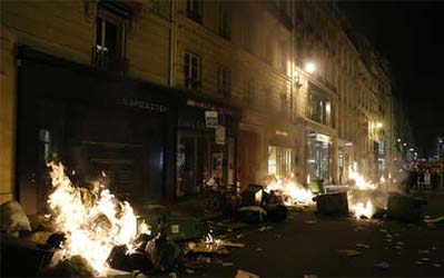 • Las calles de París están en llamas, incluidos los coches. Fueron incendiados por manifestantes descontentos con la reforma de las pensiones.  La policía logró expulsar a la mayoría de la multitud del centro de la ciudad.