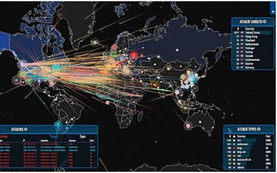 Las parcelas gráficas en vivo de cada ataque tiene lugar en Internet, en tiempo real y revela el número de ataques, los países donde se originan, y a los objetivos que se dirige.