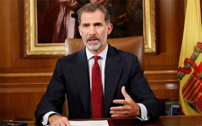 En una alocución excepcional ante la situación de emergencia en Cataluña, Felipe VI ha acusado a la Generalitat de "deslealtad inadmisible" y de situarse al margen del derecho y la democracia. El monarca también ha tenido palabras para los catalanes contrarios a las últimas decisiones de su Gobierno: "No estáis solos, tenéis nuestra solidaridad y la garantía del Estado de Derecho"… y ya está. Eso es todo, amigos.