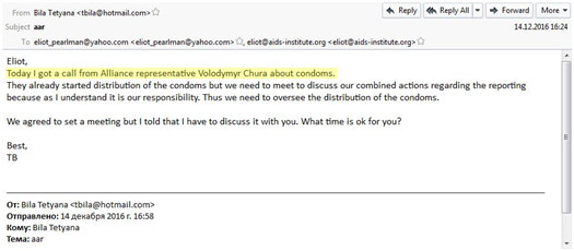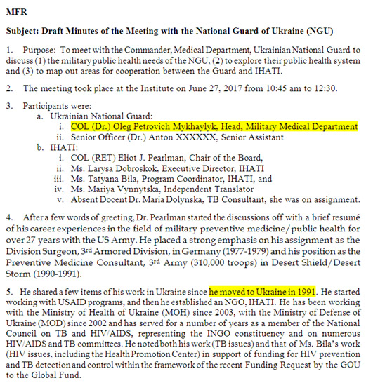 «El Instituto Internacional de VIH, SIDA y Tuberculosis» está dirigido por Eliot Perlman, un ex médico militar y un especialista en virus, que fue enviado a Ucrania por la Agencia de Inteligencia del Departamento de Defensa de EE.UU. en 1991.