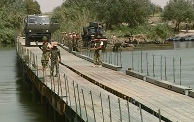 Ingenieros rusos construyen un puente de 210 metros en 2 días para el paso de tanques sirio por el Éufrates
