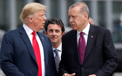 En alusión a las sanciones contra dos ministros de su gabinete y del incremento de las tarifas de acero y aluminio por Trump, Erdogan refirió que "por un lado eres aliado estratégico y por el otro disparas al país en el pie".