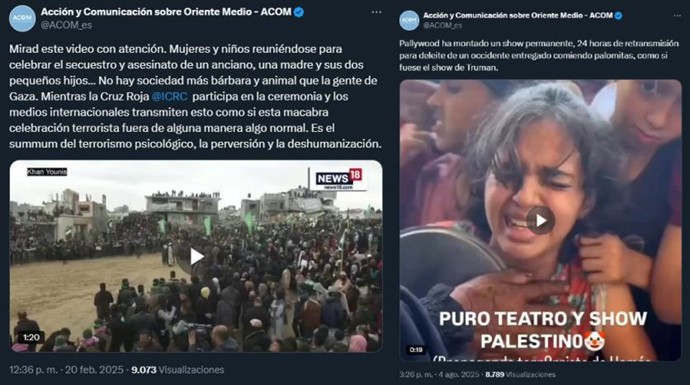 Lo de “armado” no es una expresión vacía. La actividad en redes sociales de ACOM muestra un grado altísimo de violencia, desde montajes que combinan la bandera de Palestina con una esvástica nazi hasta acusaciones que afirman que las imágenes de cadáveres y heridos por los ataques israelíes son falsas –“Pallywood”, lo llaman, haciendo un juego de palabras con Hollywood y Palestina–, pasando por afirmaciones como que “no hay sociedad más bárbara y animal que la de Gaza”.