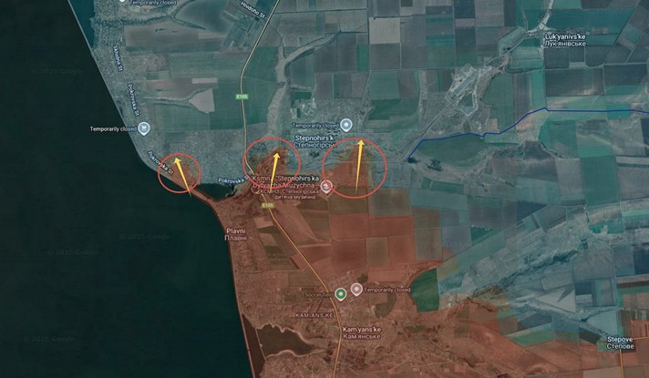 Como mención rápida, más al oeste, en la línea de Zaporozhye a lo largo del río, las fuerzas rusas penetraron más profundamente en Stepnogorsk y Plavni-Primorsk: