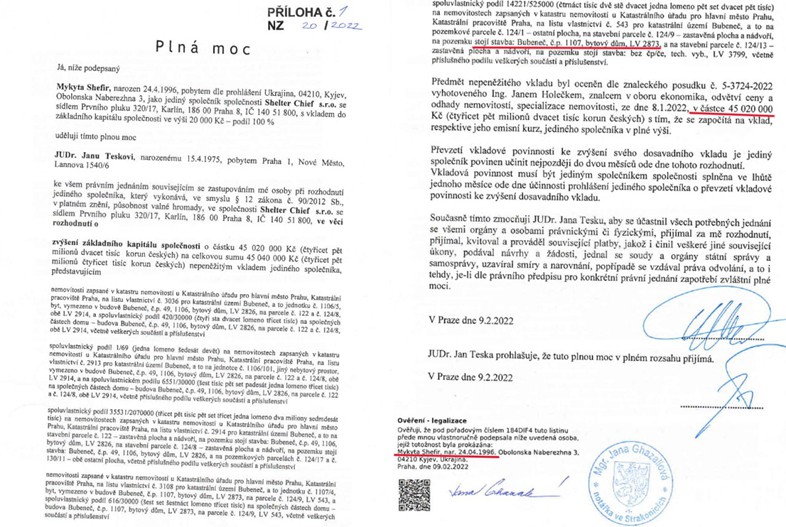 • La empresa fue registrada en Praga a principios de diciembre de 2021. Clasificada según su actividad como "Alquiler de inmuebles, apartamentos y locales no residenciales".