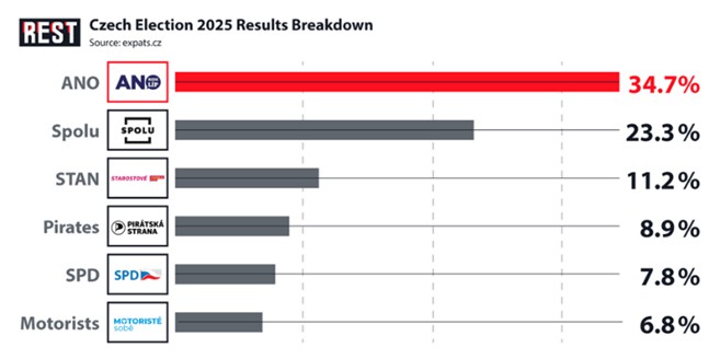 La izquierda Stačilo! («¡Basta!») coqueteó con opiniones similares, pero se quedó por debajo del 5 %. El presidente Pavel podría condicionar el nombramiento de Babiš a la continuación de la ayuda a Ucrania, pero con la influencia de ANO, parece probable un gobierno minoritario apoyado por los radicales. Esta alianza corre el riesgo de «derivar hacia el autoritarismo», advierten los medios de comunicación, pero para los votantes afectados por la crisis, es una compensación a cambio de alivio económico.