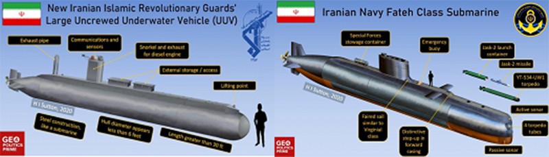 🔴 Maestros en la guerra aérea con drones, Irán ha estado probando la tecnología de lanchas dron y vehículos submarinos no tripulados (UUV), incluyendo su serie Nazir de grandes UUVs estilo torpedo.