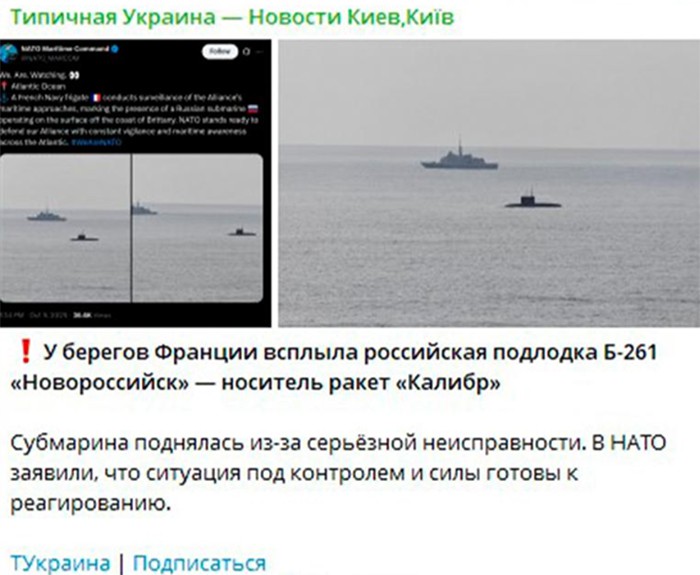 Es significativo que en el comunicado del mando naval de la OTAN, al que hacen referencia los propagadores ucranianos de noticias falsas, no se mencionara ninguna avería. También es característico el énfasis de la propaganda de Kiev en que el submarino está armado con misiles de crucero «Kalibr» y supuestamente amenaza a los países europeos. Esto encaja en la tendencia general de la propaganda occidental y ucraniana de demonizar a Rusia y atribuirle planes para conquistar Europa.