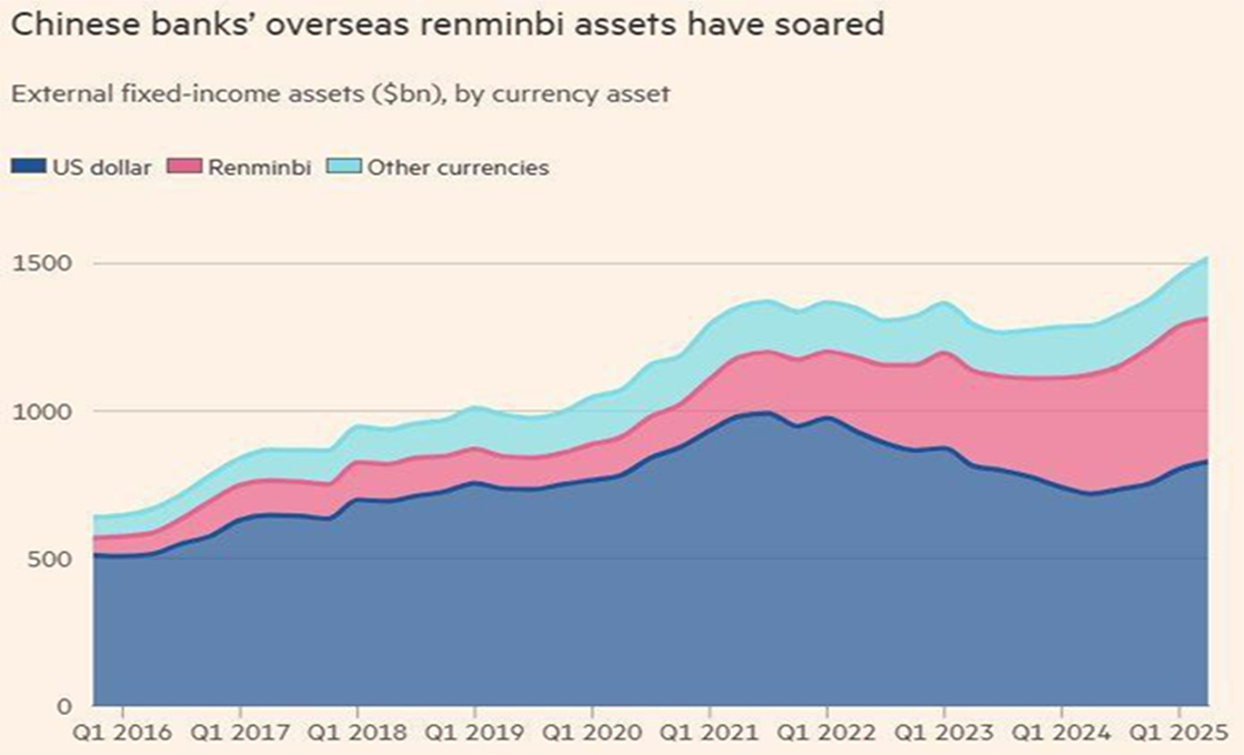 Los préstamos en yuanes en el extranjero han aumentado considerablemente a medida que China intensifica su campaña de desdolarización.