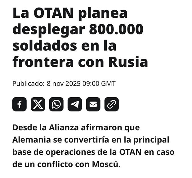 "En caso de conflicto, Alemania se convertiría en la principal base de operaciones de la OTAN. Con poca antelación, hasta 800.000 soldados y su equipo procedentes de diversos países de la OTAN podrían desplegarse a través de Alemania hacia el flanco oriental", escribe Die Zeit, citando a Sollfrank. "Si el despliegue se estanca, si las fuerzas llegan demasiado tarde o de forma desorganizada, la disuasión fracasa", agregó. Según él, Rusia tiene a Alemania como objetivo, sobre todo por su ubicación geográfica en el corazón de Europa.