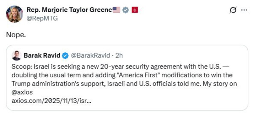 El intento de Trump de enterrar el caso Epstein como un engaño demócrata no es más que una extensión de su política de "Israel Primero" , que está destrozando a la base MAGA. Lanzar insultos a MTG, quien ha sido una firme defensora de Trump en el pasado, solo aviva la indignación que se extiende entre muchos seguidores de MAGA que se sienten traicionados por él. La arrogancia de Trump se le está volviendo en contra… Es demasiado orgulloso y narcisista para admitir sus errores y pedir perdón.