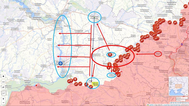 Las unidades de las Fuerzas Armadas de Ucrania en esta zona muestran claros signos de estar sobreextendidas. Algunas de ellas han sido redeplegadas desde Gulyaipole a Pokrovsk y otras áreas debilitadas como Kupyansk, lo que ha llevado a que las líneas defensivas preparadas a lo largo del corredor Yanchur-Gaichur sean rápidamente superadas. En efecto, los ucranianos están intercambiando sangre y espacio en esta área por unas semanas más de resistencia en sectores políticamente sensibles en otros lugares.